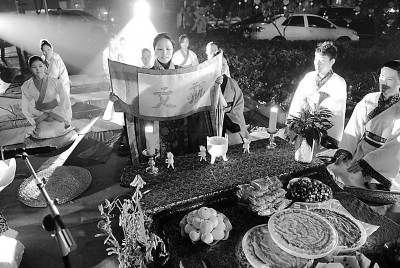 9月12日夜,济南大明湖湖畔,汉文化倡导者举行汉代拜月仪式。拜月者身着汉服,宣读拜月祝文。拜月是汉民族的传统习俗,历史悠久,这是济南近年来首次出现拜月活动。CFP供图