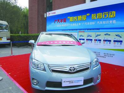 近日,广汽丰田试制车捐赠仪式在清华大学举行。在现场,广汽丰田向数十所高校捐赠了用于教学和实验的试制车,并开展了首个高校混合动力技术讲座。同日,由广汽丰田赞助支持的清华大学汽车知识竞赛也正式拉开帷幕。