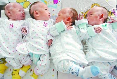 这是2011年8月17日在江苏连云港市拍摄的刚刚满月的“双龙双凤”四胞胎。