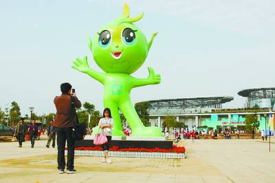 10月30日上午,柳州市民在第一届广西园林园艺博览会吉祥物“柳娃”前留影。当天,首届广西园林园艺博览会在柳州开幕,来自广西全区14个地级市及日本、缅甸、荷兰等23个国家和地区参展。博览会免费对外开放,开幕式当天就吸引了数万市民前来参观游览。