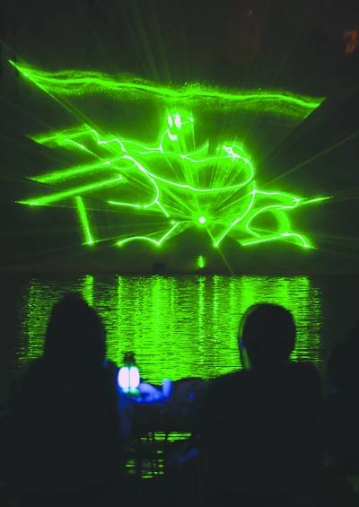 日前,上海,首场多媒体激光水幕电影当晚在新虹桥中心花园的湖面上放映,这种代表世界先进科技的户外水幕电影在沪上尚属首次出现,通过具有一定空间厚度感的立体水膜产生视觉穿透性,使观众置身于身临其境般的奇幻意境中,享受三维空间的视觉盛宴。
