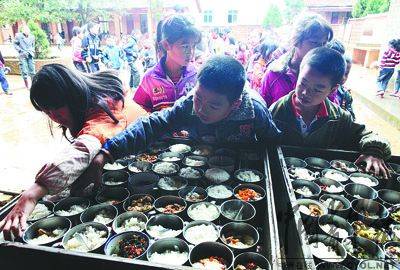 11月7日,江西省九江市彭泽县大港小学“免费午餐”开餐。萝卜肉丝、白菜粉丝、米饭和一个鸡蛋,学生们第一次在学校吃上了丰盛的午餐。学校113名学生中60%是留守儿童,最远的家离学校近5公里,中午不能回家吃饭。“免费午餐”计划由国内500多名记者及几十家媒体共同发起,倡议为贫困学童每天捐赠3元,提供免费午餐。该计划已惠及湖南、广西、贵州等省区80所小学的1万多名小学生。