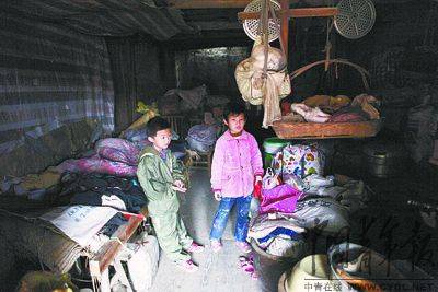 8岁的吴茜也是和67岁的奶奶生活在一起。她住在一栋没有完全装修完的房子里,这是吴茜大伯的房子,大伯一家外出打工,来不及装修完就又走了。吴茜的父亲双腿残疾,平时在乡里做小买卖,母亲已改嫁了。吴茜有一间自己的屋子,但屋里没有光照,唯一的电灯也已经坏了。吴茜说,平时都是天黑了回来睡觉的,奶奶也不会修,所以一直都是黑着的。吴茜的玩具是一个少一只脚的喜羊羊毛绒玩具,是爸爸给的,给的时候就是这样。她说,平时不常见到爸爸,只有奶奶说没钱了,才去乡里找爸爸,上次去是3个星期以前了,爸爸给了100元。