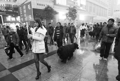 11月15日,郑州,某养殖基地派出宝马车和礼仪小姐,在火车站迎接两只来自青海的藏獒。