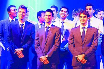11月17日,伦敦。2011ATP年终总决赛前瞻,众网球巨星西装革履华丽亮相。