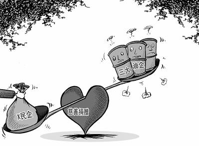 国资委近日公布了央企2011年1~9月对外捐赠情况。其中,中石油约2.4亿元,中石化0.98亿元,中海油0.85亿元,三大油企共计捐赠4.23亿元。去年全年,三桶油的对外捐赠总额为8.98亿元。与之形成对比的是民营企业的慈善捐赠。2011年4月,福耀玻璃集团董事长曹德旺家族将持有的3亿股福耀玻璃股票捐赠给“河仁慈善基金会”,当时这笔捐赠市值达35.5亿元。2010年,曹德旺捐赠到账总额为10.28亿元。2010年4月,曹德旺家族向玉树地震灾区捐款1亿元;2010年5月,向西南干旱灾区捐款两亿元。CFP供图