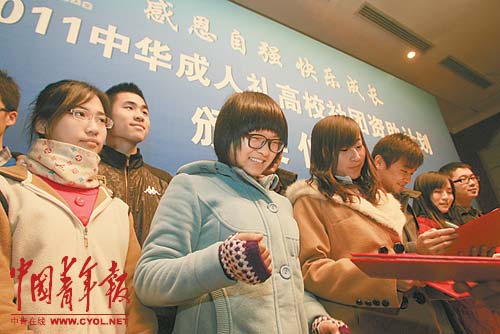 为了让大学生能在刚步入成年人行列的年龄段,快乐地展现自我、充实内心、感悟成长,2011年,中国青年报社与山东省旅游局以“中华成人仪式主题教育活动”为依托,共同发起了“感恩自强 快乐成长——中华成人礼高校社团资助计划”。该计划由中国高校传媒联盟大学生旅游实践营公益资金扶持,并设有多项大奖。