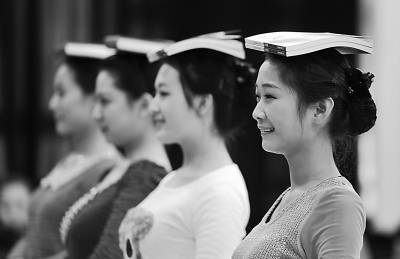 头顶书本,保持姿势不变,书不能落下……12月24日,北京站备战春运,对新上岗的员工进行培训。培训中还有形体、语言、沟通技巧、化妆技巧等内容。女孩们还需要适当掌握交际英语、医护急救、应急情况处置等专业知识。