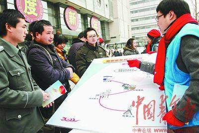 12月30日,北京街头,志愿者正在向过往行人发放北京地区铁路春运《旅客购票乘车服务指南》,并讲解火车票实名制实行后的相关问题。当天,和谐北京·温暖之都——2012年北京青年“两节送温暖”活动启动,北京市团组织号召首都青年送孝心暖家庭、送祝福暖邻里、送帮助暖社区、送关爱暖社会。
