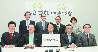 从执政的日本民主党退出的9名国会众议员4日在东京举行发布会,宣布组建新党“纽带”,前总务省大臣政务官内山晃出任该党党首。关贤一郎摄(新华社发)