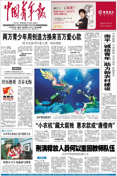 1. 凡本网注明"来源:中青在线或中国青年报"的所有作品,版权均属于中青在线或中国青年报社,未经本网授权,不得转载、摘编或以其它方式使用上述作品。