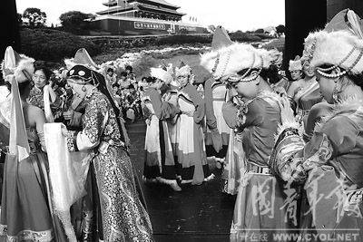 1月8日,北京保利剧院,演员们正在彩排藏族特色节目《甘南大草原的祝福》。该剧是甘肃省甘南藏族自治州赴京文艺汇报演出,展示了四川汶川特大地震、甘肃舟曲特大山洪泥石流等重大自然灾害后,灾区重建的成就,表达了当地人民对全国各地无私援助的感激之情。
