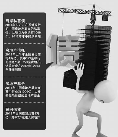 房企的债务偿还高峰期将在2012年到来。除银行贷款外,海外债、房地产信托、基金、私募、民间高利贷这4个维度的债务将一一引爆。债务危机加上调控不放松,房企降价是大概率事件,部分房企将被迫遭清算、破产、重组。