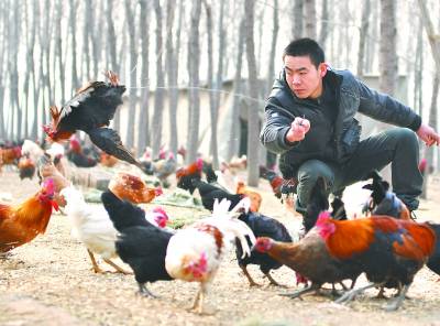 春节临近,山东邹平县青阳镇西窝陀村柴鸡养殖场的生意格外红火,该养殖场用生态散养方式,绿色喂养,无添加剂,肉蛋天然健康、味道鲜美、富有营养,特别受到消费者的青睐,价格虽高(普通肉蛋的3~5倍),但畅销节日市场,日均收入万余元。据悉,该养殖场是2010年年底该村从部队退役的青年张进创办的,2011年养殖的1.1万只柴鸡将全部供应节日市场,以满足市场的需求,纯收入将达30余万元。