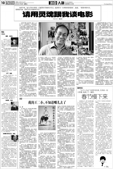 从训练班出来没多久,他就遇上了一个以后会让他“很头疼”的人。那时,一个阳光的年轻人每天踩着双布鞋、背着一个蓝布小布袋就出现在电影公司里,貌不惊人地当着场记。后来了解华语电影的人都知道这个年轻人的名字了。他叫侯孝贤。