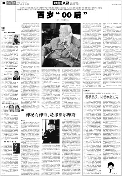 可他至今仍过着年轻人的生活。他抢着接听家里的电话,能迅速报出几个熟人的手机号码。如果电灯没有关上,他宁可自己动手也不会去指挥晚辈。总能令访客惊奇的是,多数时候为他们打开家门的是他本人。他还自己洗澡,生活“完全自理”。