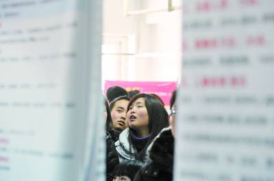 1月31日,在安徽省合肥市体育馆内,应聘者在查看招聘信息。