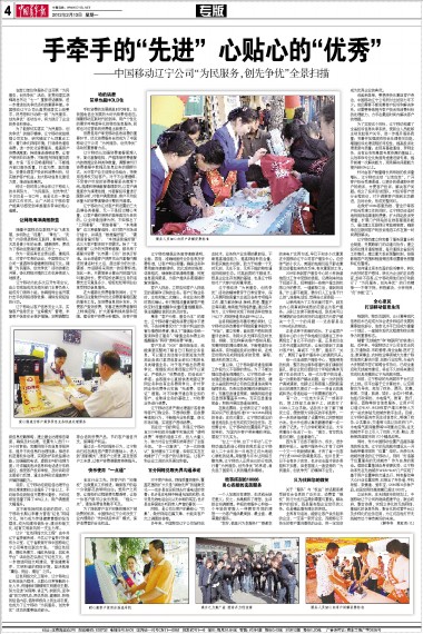 在窗口单位和服务行业开展“为民服务,创先争优”活动,是贯彻落实胡锦涛总书记“七一”重要讲话精神,进一步推进创先争优活动的重要举措。中国移动辽宁公司认真贯彻落实上级要求,将思想和行动统一到“为民服务, 创先争优”活动当中,有力践行了企业的责任和使命。
