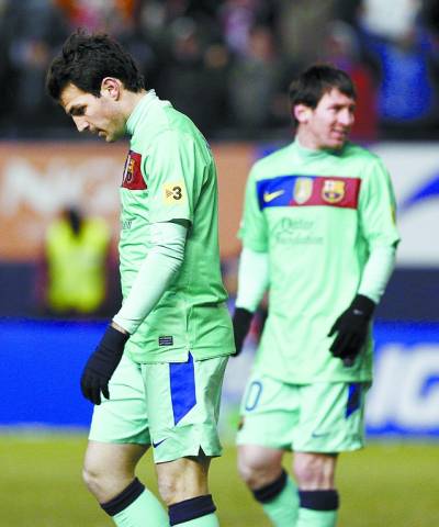 2月12日,西甲联赛,客场作战的巴塞罗那队2∶3不敌奥萨苏纳队,与领头羊皇马的积分差距进一步扩大。CFP供图