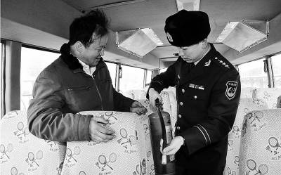 为深刻汲取甘肃校车事故教训,黑龙江省大庆市消防部门联合交警部门突查全市校车安全,全力保障学生高高兴兴上学,平平安安回家。伟东摄