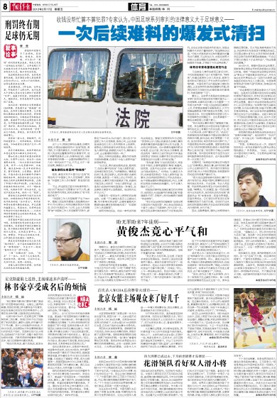 “其实,因为这个案子比较特殊,在今天一审前我只见过黄俊杰两次,第一次是接到他家属委托后去见过他一次,原本法律规定,申请48小时内即可安排与当事人见面,但我见他的时候已经距离申请48天都不止了,所以,很多辩护工作都没法深入。”刘炜在谈到他对黄俊杰的印象时告诉记者,“接触这么少,所以我对他没有太多的了解,他在第一次见我的时候就很悔过,他说他很多年来一直在外面当裁判跑来跑去,没什么时间陪家里人,心里很过意不去,而且他爱人的身体也不是很好,这次出去了,以后一定要和家人安安稳稳过一辈子。”
