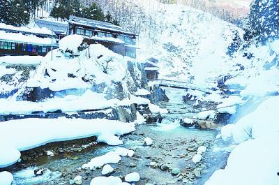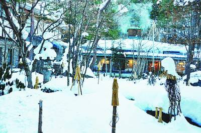志贺高原的山之内町,是日本有名的温泉之乡。其中,汤田中涩温泉乡以九大温泉著称。地狱谷温泉,是这九大温泉中最有名的一处。它出名,并不是因为这里的温泉有什么特别,而是这里有一群泡温泉的猴子。进山的小路有些难走,因为道路十分狭窄,而且有很厚的冰雪。在这样的寒冷中,却总可以看到有些地方露出地面,没有冰雪,原来那里的地面下是输送温泉的管线,山下酒店的温泉,都是从这里引流过去的。据说,管线中的温泉水温达70多摄氏度。