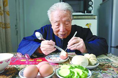 为保持双手的灵活性,葛宝丰60多年来坚持用勺剥鸡蛋。(2012年1月21日摄)