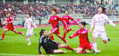 中国女足今天下午在重庆永川的四国赛中,同劲敌朝鲜队以0∶0战平,三战一胜二平积5分夺得亚军,朝鲜队获得冠军,韩国队第三,输给中国队的墨西哥队排名垫底。
