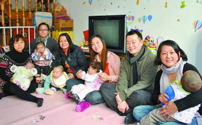 图为“鲁冰花舍”的6位创始人:何晓景、张靖燕、王飞、任燕、李玉卿、杜炜(从左至右)和孩子在一起(2月17日摄)。