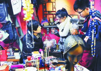 日前,上海虹口区的同鸣路上开了一家“调一调”交换商店,在这家店里,你要是看中什么物件,只要拿出家中闲置的物品交换就行。由于这种以物换物的方式十分新颖,吸引了不少市民光顾,仅16平方米的商店被前来的换物者挤得满满当当,部分商品也只得摆到店门外。图为女店主陈捷(左一)在与顾客交流。