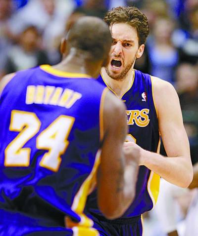 科比一个转身,但并没有选择投篮,而是将球高高抛向空中,加索尔心领神会,一个空中接力命中。这是湖人与小牛第比赛第四节关键时刻的一幕。科比和加索尔都在用实际行动宣示,他们彼此信任,仍有能力夺得总冠军。