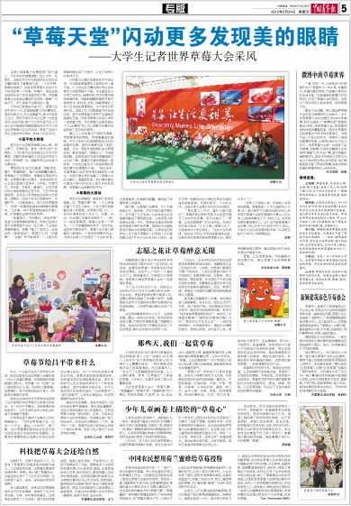 截至大会闭幕,第七届世界草莓大会的官方微博有听众5888人,关于世界草莓大会的话题已有55873条微博,网友还摘走了“微博校园”草莓勋章500多枚。来到草莓大会,享受着视觉和味觉的饕餮盛宴,感知世界最前沿的草莓生产技术和经营理念,怎能不@一下自己的好友,将美妙心情通过微博来传递、分享呢?独乐乐不如众乐乐,世界草莓大会第一次拥有了官方微博。发微博,还有机会赢得大会吉祥物“康康”以及大会门票、昌平草莓采摘券等好礼。来自中央财经大学和华北电力大学的两位男生告诉笔者,他们俩就是因为看了同学的微博,被其中娇艳欲滴的草莓所吸引,结伴而来。