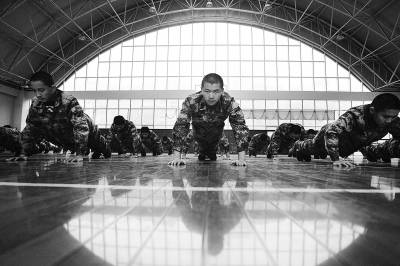 在武汉六中校园,身着迷彩装的“空飞基地班”学员是一道独特的风景。近日,学员在教官指导下进行上肢力量练习。 据介绍,武汉六中“空飞基地班”创建于2011年,是空军政治部在全国建立的第二个早期培训基地。学员由武汉六中和空军预警学院共同培养。