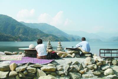 在温暖的阳光下,看壮丽雄伟、白雪皑皑的山峰,倒映着雪山身影的宁静湖泊,湖滨区花园般的庭院旅馆,路边出售围巾、地毯、民族服装、乐器和CD的小商店琳琅满目,来自世界各地各种口味的餐厅……这一切,使所有关于雪山和徒步的志向顷刻被搁置一边,慵懒晒太阳和闲逛成为多数人抵达博卡拉后的首要选择。