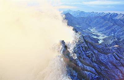 雪花一阵飘起一阵停,直到下午日落前终于起风开天了,我们领略了雾凇形成的全过程。背着沉重的摄影包,没有冰爪和登山杖一路跌跌撞撞,到达山下已经是晚上8点钟,整整15个小时的坚守,是我们拍摄箭扣长城最艰苦的一次。