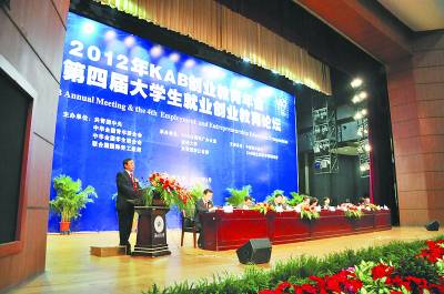 2012年3月29~30日,共青团中央、全国青联、全国学联与联合国国际劳工组织共同主办的“2012年KAB创业教育年会暨第四届大学生就业创业教育论坛”在温州大学顺利召开。规模与影响力均日益扩大的大学生KAB创业教育项目,在中国已经走过了近7年的时间。可以说,见证了我国高校创业教育发展壮大的历程:在这一发展过程中,创业教育实施的规模从小到大、所涉及的课程由少到多,极大地激发了大学生的创业精神,提升了大学生的创业能力,创业教育也逐渐由解决大学生就业难题的一项举措转变为一个关涉高校人才培养质量提升的重要因素。尤其是在2010年5月,教育部下发的《关于大力推进高等学校创新创业教育和大学生自主创业工作的意见》明确指出:“创业教育是适应经济社会和国家发展战略需要而产生的一种教学理念与模式;创业教育要面向全体学生,融入人才培养全过程;要以改革人才培养模式和课程体系为重点,大力推进高等学校创业教育工作,不断提高人才培养质量。”