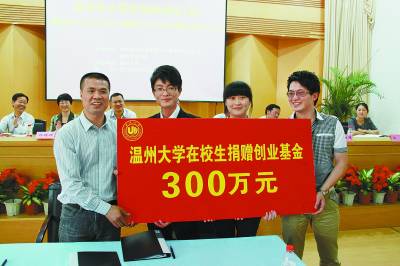 创业教育还有效增强了学生的社会责任感。2011年4月,学校大学生创业园内3家成功孵化的在校学生创业团队(蓝蜗牛传媒工作室、温州宜思商贸有限公司、风尚数码城)拿出在校期间创业收入的钱共同捐赠300万元成立温州大学学生创业基金,用来资助具有发展前景的在校大学生创业团队,这在全国还是首例。