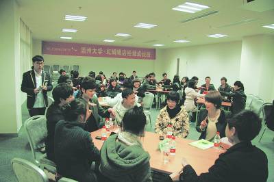 创业管理学位班还对岗位创业实践教学形式与内容的多元化进行了有效探索。以岗位创业能力培养进程为主线,创造性地建立了由“创业认知、创业训练、创业岗位实习”三个阶段构成的连续性创业实践教学形式,创业认知以理论模块的课堂教学为主;创业训练依托培养方案课程体系中的实务模块,以温州大学大学生创业园和8个二级学院创业中心的现有工作室(公司)以及面向在校大学生招租的生活区店铺为实践平台展开;充分利用温州中小民营企业众多,创业、经商氛围浓郁的优势,积极利用各类社会资源,建设校外大学生岗位创业实践基地,与红蜻蜓、新湖、奥康等知名集团公司、温州经济技术开发区企业等共45家企业建立了合作办学关系,与温州市总商会下的全国各地温州商会建立实习联系,学生以商会会长助理、总经理助理、销售主管助理、财务主管助理、人事管理助理、店长助理等形式在相关企业和商会进行为期两个月的岗位创业实习。