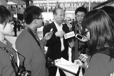 北京车展期间,本报以占领“未来汽车”舆论高地为目标,成功组织了三大活动,分别是注册大学生记者团、未来汽车推选和中国青年未来汽车消费趋势调查。4月23日媒体日当天,30名来自全国各地的大学生记者深入各展台采访,图为长安汽车工程研究总院副院长赵会接受大学生记者的采访。
