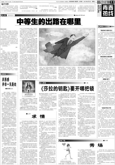 给自己,给他人,给更多事物多一点原谅、信任和理解。回到莎拉,如果当初她没有把弟弟锁进密柜里,那么极有可能的是一家四口全部死在难民营。在残酷的现实条件下,莎拉手中的钥匙根本无法左右一个人的命运。即使这一刻把弟弟从危急中救出,下一刻他也许又跌进苦海。莎拉如果能意识到这些,告诉自己这些,那不是她的错,她努力了,也许,她就能从困扰多年的情绪中走出来。