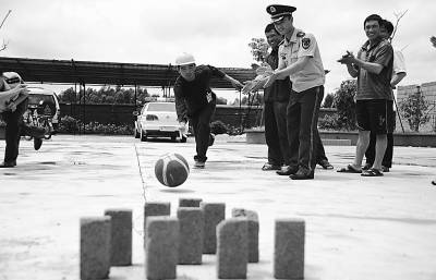 4月28日,广东中山边防支队沙头涌边防派出所为当地农民工举办了一场别开生面的“农民工运动会”,以此形式迎接五一劳动节。近百名农民工参加了手推车、跳袋鼠、螃蟹赛跑、砖头积木、工地保龄球等比赛项目。