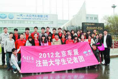 4月27日,2012北京国际车展注册大学生记者团一行走进一汽大众长春汽车制造基地,我们在冲压、焊装、总装、发动机等汽车生产车间却看到了与上述迥然相异的画面:整齐流畅的汽车生产线上,蓝领工人们有条不紊地完成自己所负责的工序,见到来访的我们还微笑着给予客人一个温暖的招呼。他们的微笑,似乎在无言地讲述着“员工眼中最具吸引力的公司”的魅力故事。