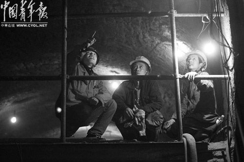 北京地铁6号线朝阳门换乘站施工工地,中铁隧道集团青年技术员黄小平(左)给工人指导施工细节。据介绍,6号线是北京市地铁建设历史上施工难度和安全风险最大的一条线路,各施工单位纷纷开展青年突击队、青年安全生产示范岗的组建工作,充分发挥80后、90后生产建设主力军作用。