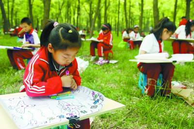 首届黄河三角洲湿地槐花节日前在山东省东营市河口区举办,团河口区委组织100名孩子参加湿地槐林青少年书画大赛,让他们画出对家乡的热爱,增强同学们的生态环保意识。李学聪摄