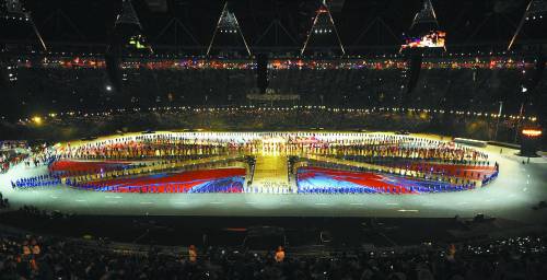 8月12日,第三十届奥运会闭幕式在伦敦奥运会主体育场举行。图为各代表团在闭幕式上入场。