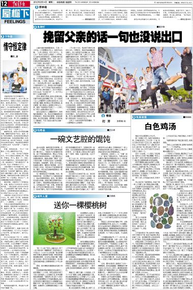 三杰最拿手的一招是熬鸡汤,晓红从没见过的白色鸡汤。她总以为,只有骨汤、鱼汤是雪白的,鸡汤就是再鲜,也状如清水。但三杰熬的鸡汤,不知熬了多久,竟也能变成白色,影影绰绰看不见底,只见到黄灿灿的鸡油花飘在上面,随着勺子拨弄,分分合合。