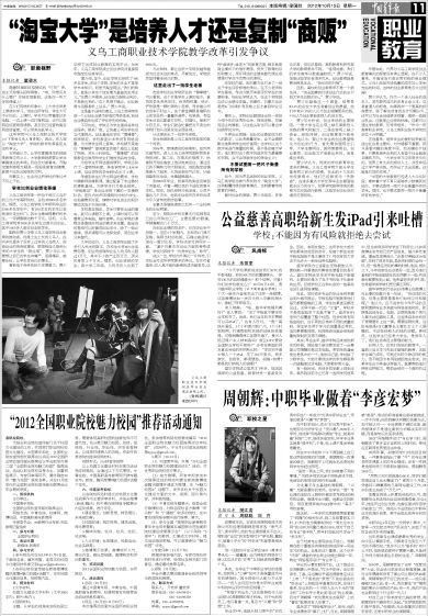 (1)中国青年报:开展“2012全国职业院校魅力校园建设巡礼”活动,对优秀职业院校进行展示。