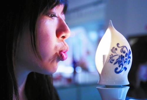 10月11日,在2012山东(青岛)台湾名品博览会上,一款像蜡烛一样可被吹亮、吹灭的应急灯亮相,这款灯可以断电使用40分钟。当天,3万多种宝岛产品在博览会上精彩亮相。10余项全球第一的产品第一次带入青岛,生活创意、低碳环保、科技等商品让青岛市民大饱眼福。如会说话的机器人、侦测驾驶员疲惫的设备、可以看出身材的包包等。