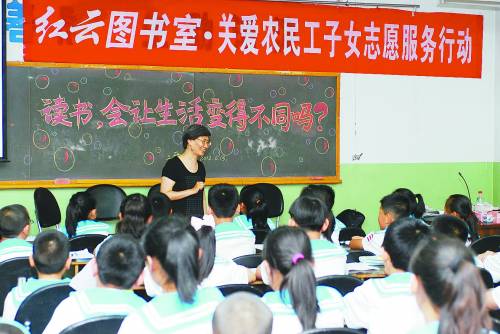 在山西太原市三晋小学, 作为“红云图书室·关爱农民工子女志愿服务行动”的志愿者,中国青年报高级编辑、著名心理专家陆晓娅给学校的农民工子女们带来了一场名为《读书,会让生活变得不同吗?》的讲座。
