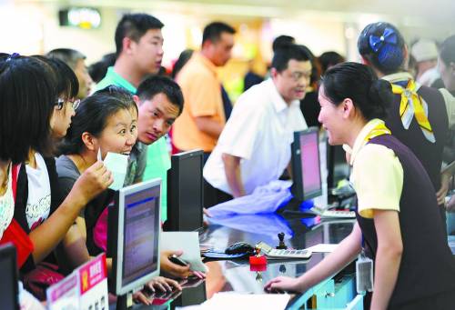 10月27日,旅客在三亚凤凰国际机场咨询航班信息。